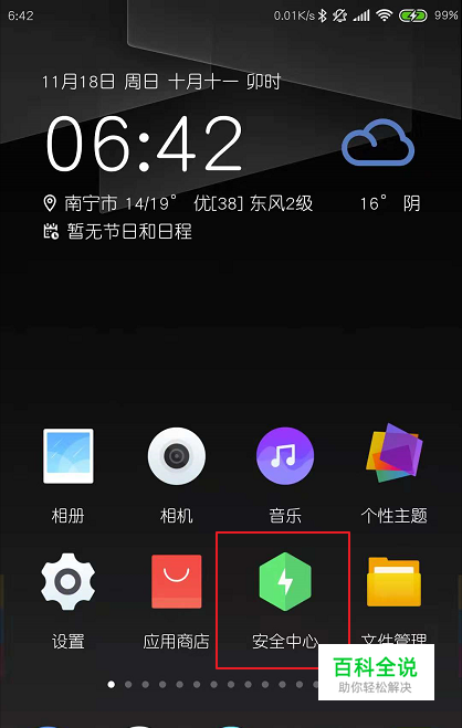 点击安全中心手机上的,点击应用程序。