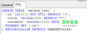 功能描述说明: 其实, 在真正开发过程中, delete的操作, 我是很少进行操作的. 特别是没有条件判断的操作, 一是为了安全性, 二是, 有些时候, 不想去删除一些数据, 所以一般都是做的update操作, 哎, 那位同学, 手里的砖头放下, 这次说的是delete, 删除的操作, 就是, 把数据库中一条或者N条数据删除. 简单的格式为: delete from table_name; 举个例子: 我们先创建一张表名为delete_test的表. 数据字段有id, title, contents