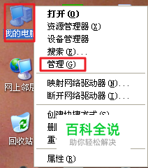 右键单击“我的电脑”,在弹出的快捷菜单中选择“管理”,打开“计算机管理”。