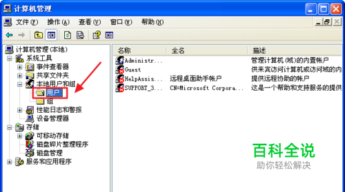 在“计算机管理”界面,在“系统工具”的子项中点击“本地用户和组”展开子项,选择“用户”子项,此时右侧会显示用户列表。