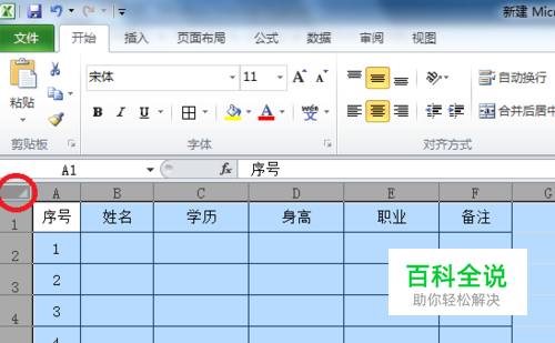 在这张图里,我不希望第一行和第一列被修改,首先鼠标点击表格左上角,全选整个工作表。