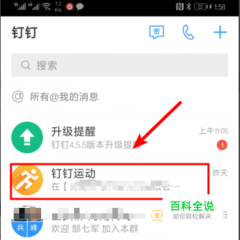 我们打开自己的手机,找到钉钉应用进入。在最近的消息中,可以看到钉钉运动的选项,我们点击进入。