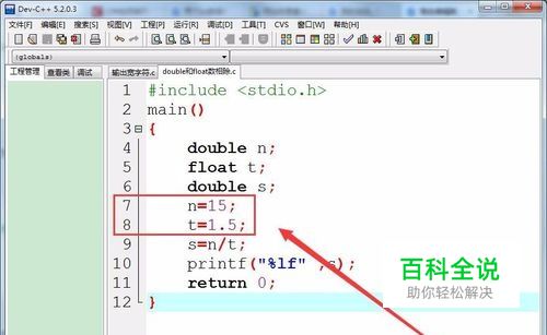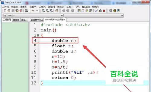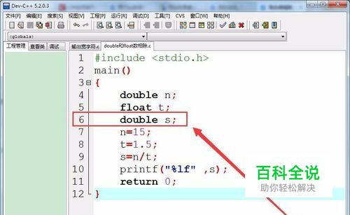 由于double数和float数相除,结果是double数。所以定义一个双精度类型的数s,作为相除的商。