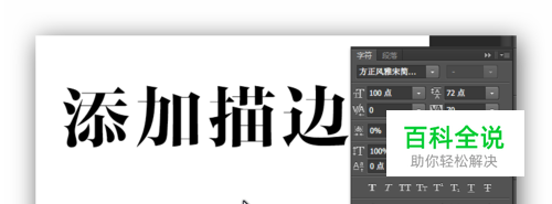 选择文字工具,切换至中文输入法,输入文字,如“添加描边”,颜色设置为黑色,字号设置为100号。