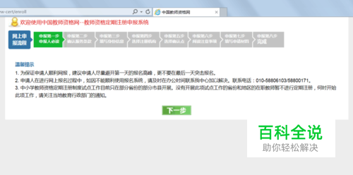 申报第一步、申报人必读,申报第二步、确认服务条款,申报第三步、填写身份信息,申报第四步、选择注册机构,申报第五步、选择确认点,申报第六步、阅读注意事项,申报第七步、填写申请材料,申报第八步、完成。如图所示。