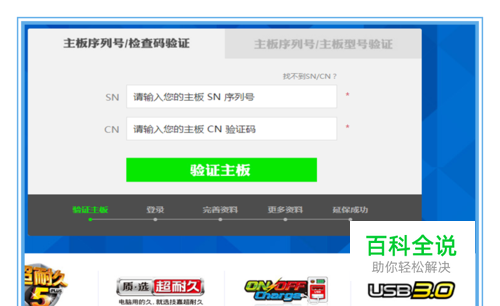 目前正品验证中只支持显卡的在线程序检查真伪,而主板仍要通过注册进行校验,点击主板四年板后,在后一个页面选择立即注册,接着就要提供上文所说的SN号及CN号
