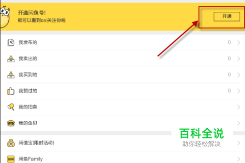 点开闲鱼,首先进入主页中的【我的】,然后点击界面中的【开通】;(如下图)