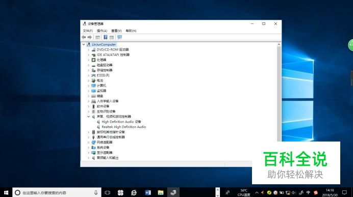 弹出"设备管理器"对话框,如图所示。展开树形目录结构,点击"声音、视频和游戏控制器"项。