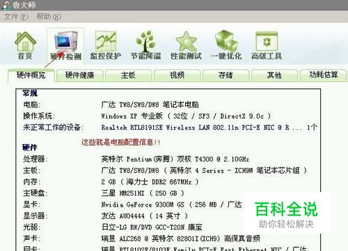 方法二:使用鲁大师硬件检测软件查看 下载安装鲁大师软件,然后打开软件,在菜单栏选择“硬件检测”即可,如图:
