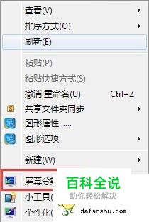 在桌面空白位置下右键选择“屏幕分辨率”,如图所示: