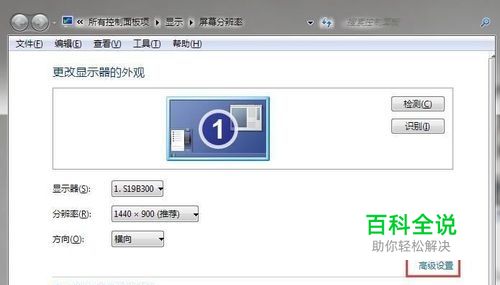 在弹出的屏幕分辨率设置界面中点击“高级设置”,如图所示: