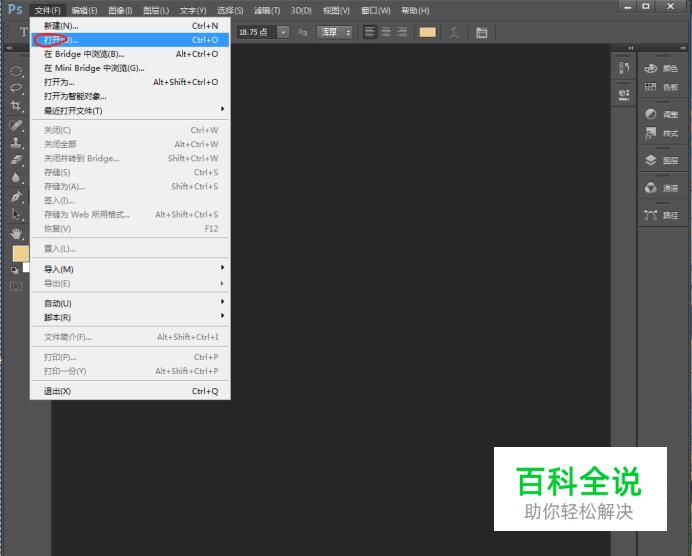 第二步,点击菜单栏上的“文件”→“打开”,打开你要ps的图片