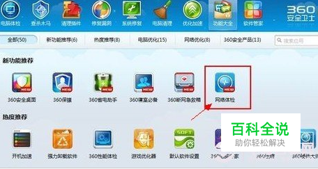 360防蹭网工具在360安全卫士的“功能大全”--“网络体检“--“防蹭网”中,如