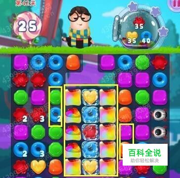 关卡目标:消除红、黄色糖果各35颗,蓝色糖果40颗
