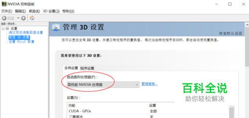 双击NVIDIA控制面板,进入到控制页面,如图,按照你的需要选择独显或者集显。