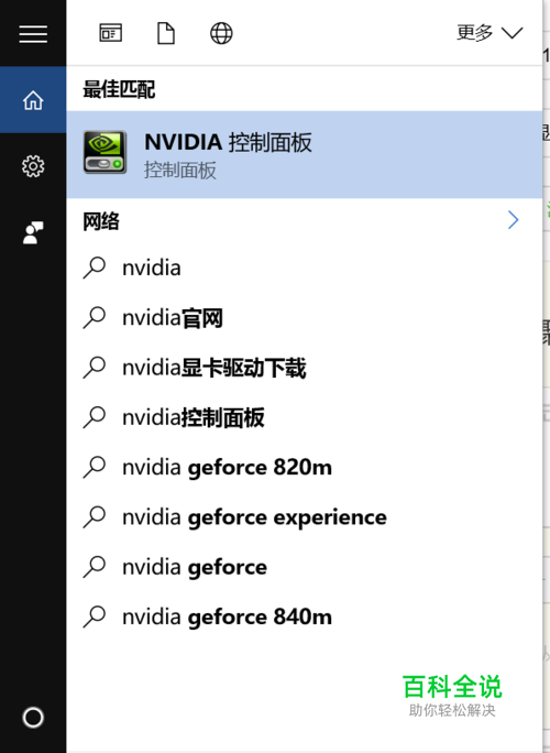 直接点击左侧Cortana,输入nvidia,直接推荐显示英伟达控制面板
