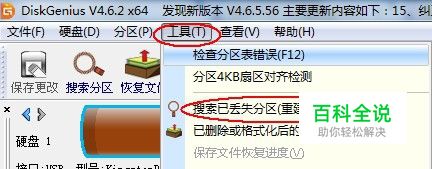 3、下载DiskGenius硬盘恢复软件,安装打开,如图选择“搜索已丢失分区(重建分区)”
