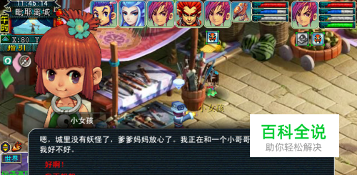 进入场景后,找到壮汉。然后坐标去〔80,17〕找到小女孩,在回去找壮汉即可。