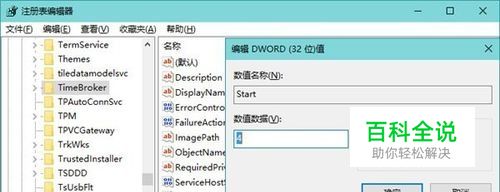 按Win按钮,输入regedit回车打开注册表编辑器,展开以下位置:HKEY_LOCAL_MACHINE\SYSTEM\CurrentControlSet\Services\TimeBroker 在右侧找到start,将其值从3改为4。 要提醒的是,修改这一值会影响到Cortana的性能,它是导致CPU超高占用的可能原因之一。如果你不使用Cortana的话,可以参考这个方法。