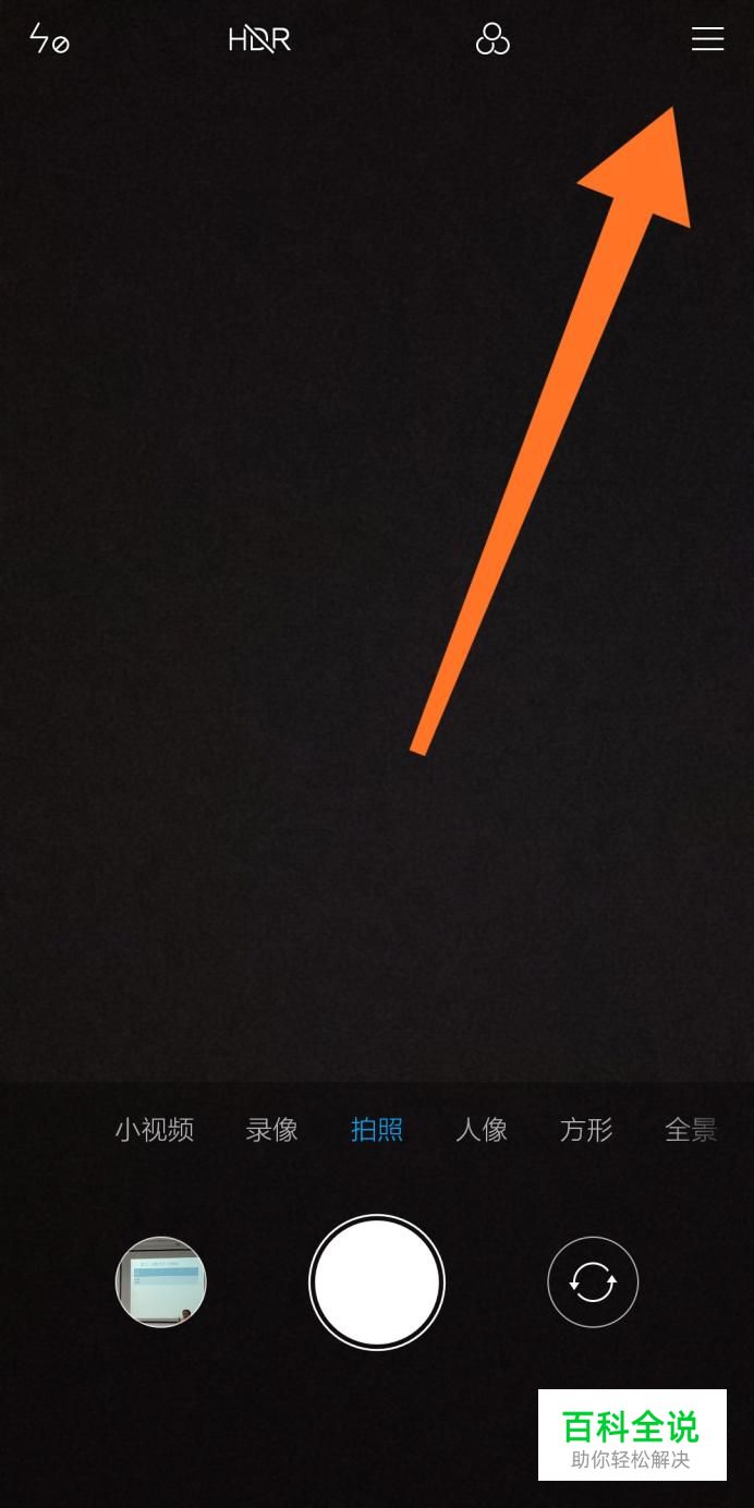 首先进入小米手机的相机,点击屏幕右上角的菜单键。