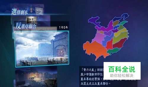 游戏模式 选择争霸模式进入游戏时,玩家需要在多个剧本间进行抉择。 不同的剧本年代、势力分本和触发事件有所不同。 玩家可以根据自己的喜好进行选择。 黄巾之乱、反董卓。。。