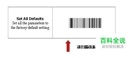 第一步、您需要扫描标识为“SET DEFAULTS”的条码以清除原有设置参数数据,同时控制设备进入设置状态。