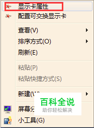 桌面上空白区域点击鼠标右键,选择“显示卡属性”