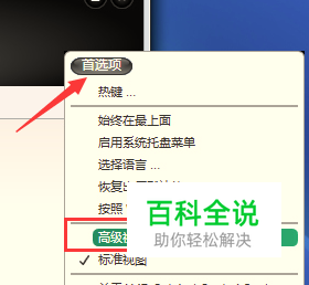 打开后找到左上角“首选项”,点开后选择“高级视图”选项;