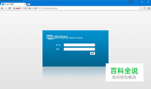 访问管理页面测试 访问zimbra管理页面,在浏览器输入: https://192.168.1.109:7071