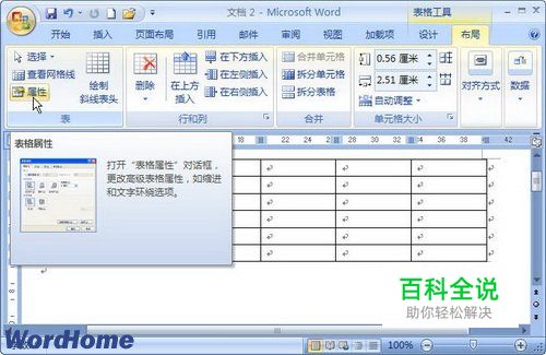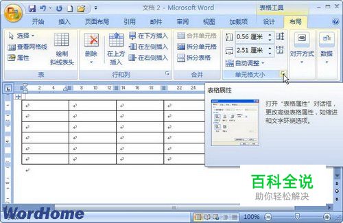 怎样在Word2007“表格属性”对话框设置行列尺寸