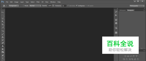 打开Photoshop这款软件,进入Photoshop的操作界面,如图所示: