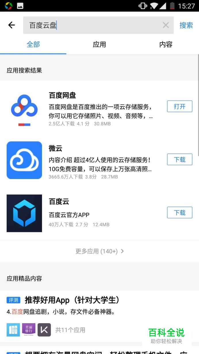 首先,打开手机自备应用商店,或者浏览器,搜索“百度云盘”,点击下载“百度云盘”
