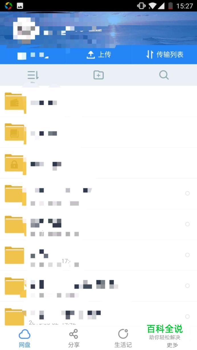在百度云盘首页,有网盘,分享,生活记,更多四个选项