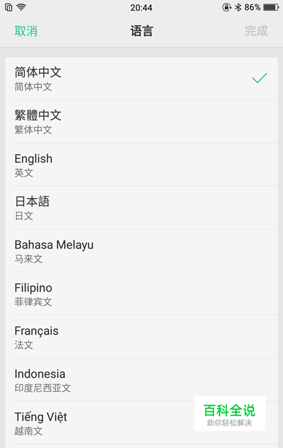 这里以切换为英文为例,点击英文--完成。