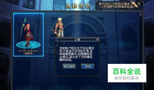 DNF安全模式是腾讯公司推出的一种游戏虚拟物品安全保护策略。当帐号处于安全模式时,该账号在游戏内进行交易、丢弃、销毁等敏感操作将会受到限制。DNF安全模式解除流程: 进入游戏界面后: