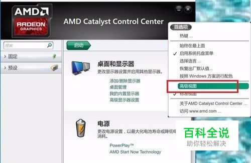 在弹出来的“AMD Catalyst Control Center”选项中点击“桌面管理”选项卡中的“桌面属性”选项;