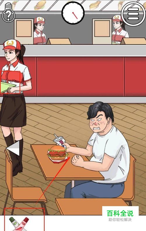 第25关:首先在右边一页拿到服务员手里的调料包给给胖胖的男的,让他做汉堡,取下胖胖的男的做的汉堡放在服务员的托盘里,就可以了