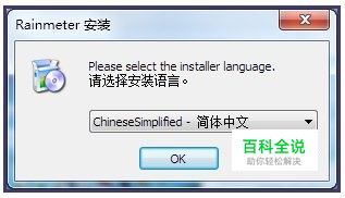 下载Rainmeter雨滴,桌面选择语言,默认选择中文,如果你要更改的话,自行选择