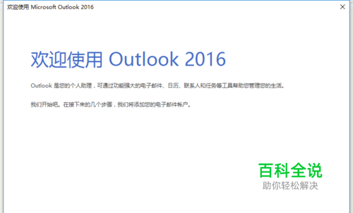 点击 Outlook2016图标进入,直至“ 添加账户”界面,过程依次如图。