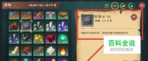 准备材料:石块x10,采集所有矿石都会出石块,如下图