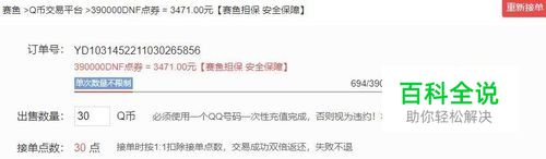 输入要寄售Q币的数量之后才能确认接单,接着就要按照订单的要求为买家充值游戏点券了。