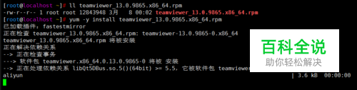 采用yum的方式安装能很好的解决依赖关系 yum -y install teamviewer_13.0.9865.x86_64.rpm