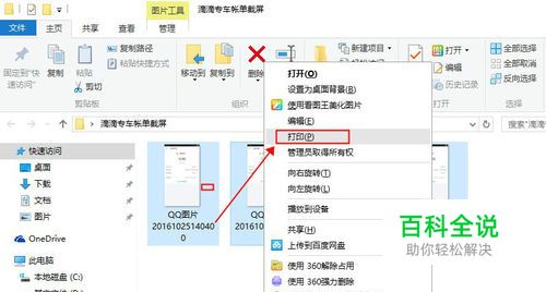全选或者按需选择多张图片,然后鼠标指针对着所选的图片点击右键,弹出菜单选择“打印”。