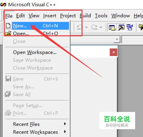 进入vc++6.0,点击左上角文件,新建。
