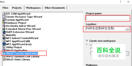 选择第二项,即工程,再选择下方的Win32 Console Application。在右边填写项目的名字和地址,然后点“ok”。