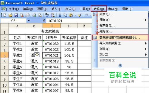 在“考试成绩”中的任意单元格上右击依次选择“组及显示明细数据”—“组合”。