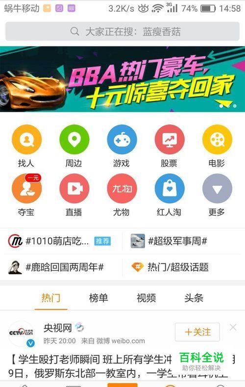 在发现的最上面有个搜索栏,点击搜索栏