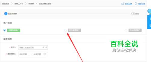 六、然后输入优惠券名称,这个可以随便设置,在设置优惠券时间,开始到结束时间