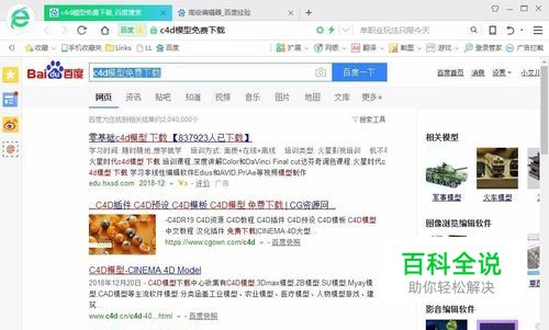 首先我们打开浏览器,在搜索栏中输入c4d模型免费下载,如图所示;