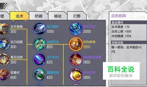 血色教典可以提高70点法强,一定的生命值与冷却缩减,这件装备的主要作用是加成了25%的吸血效果,增加缇米的恢复能力。